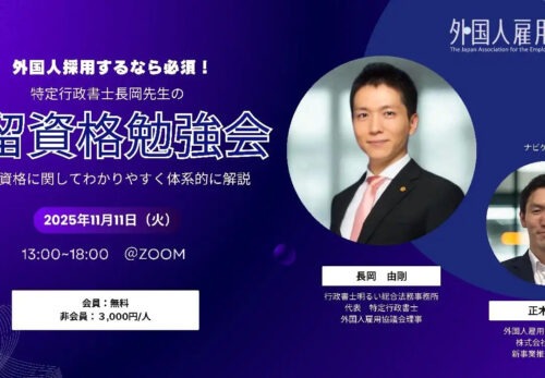 1. 特定行政書士長岡先生による在留資格勉強会のご案内(11月11日)